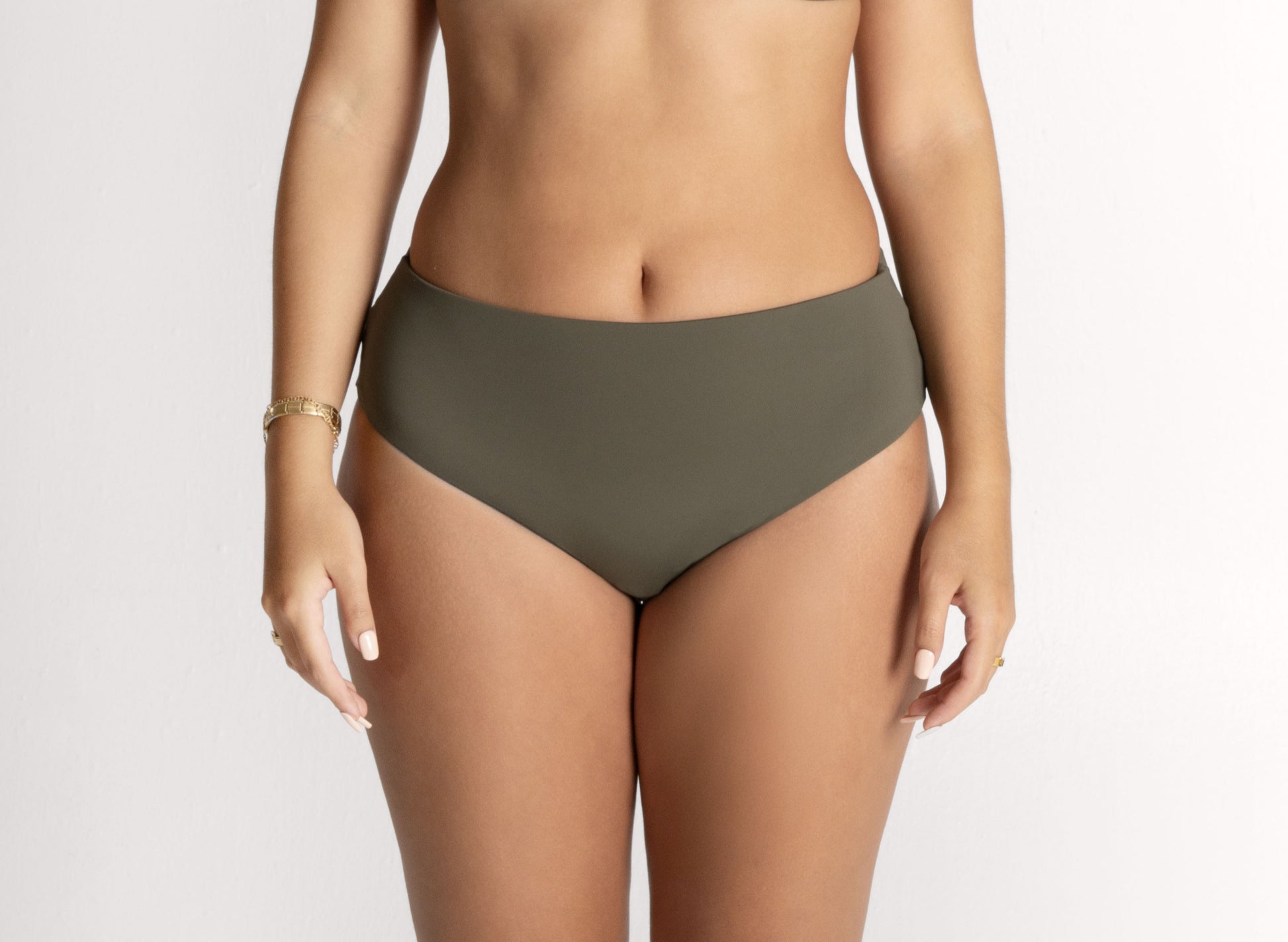 El bikini "Ilhabela", en tono verde musgo, combina un top estructurado con escote en V y un bottom de tiro alto que brinda soporte y elegancia. Es ideal para quienes aman sentirse libres, cómodas y conectadas con lo esencial.